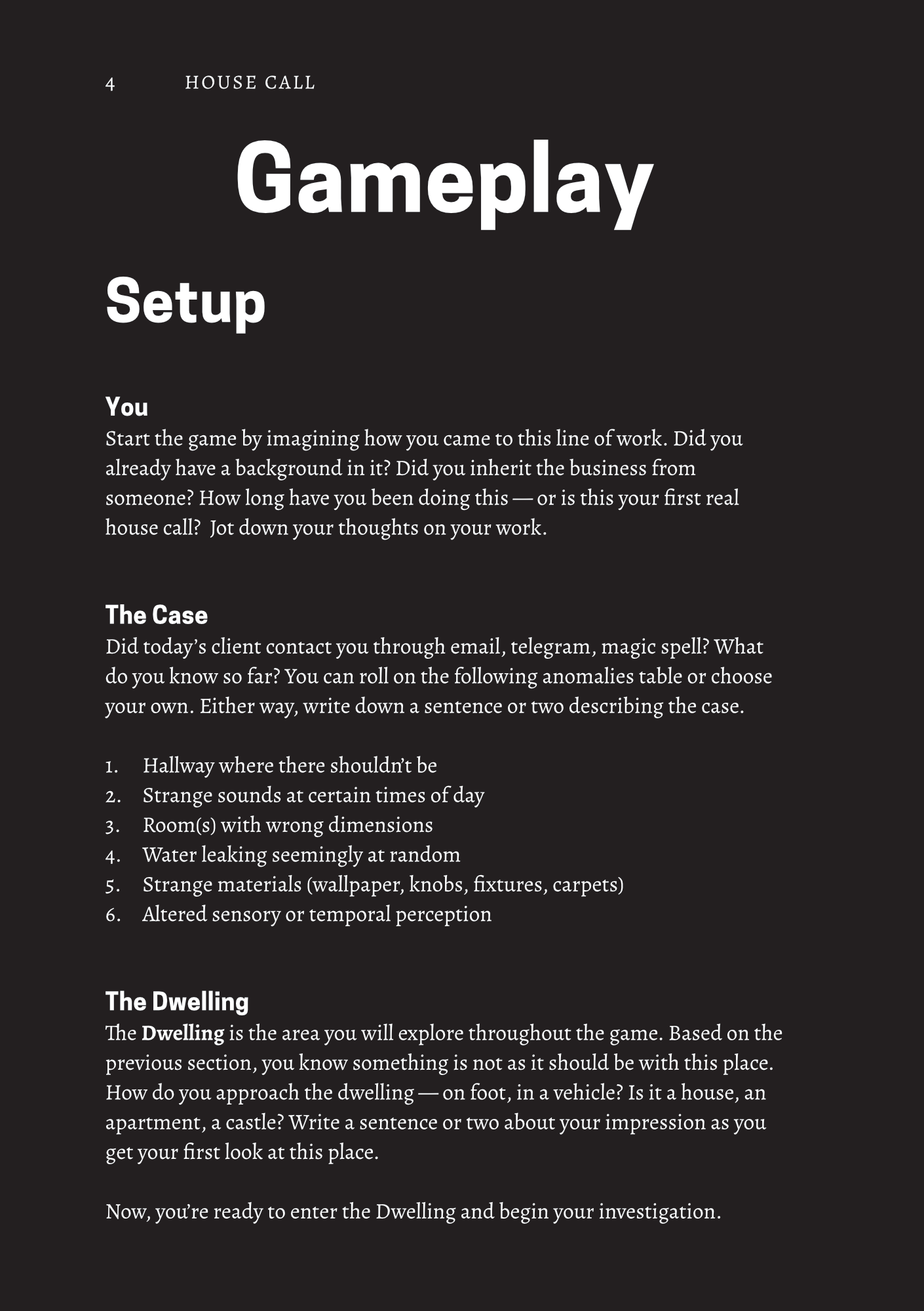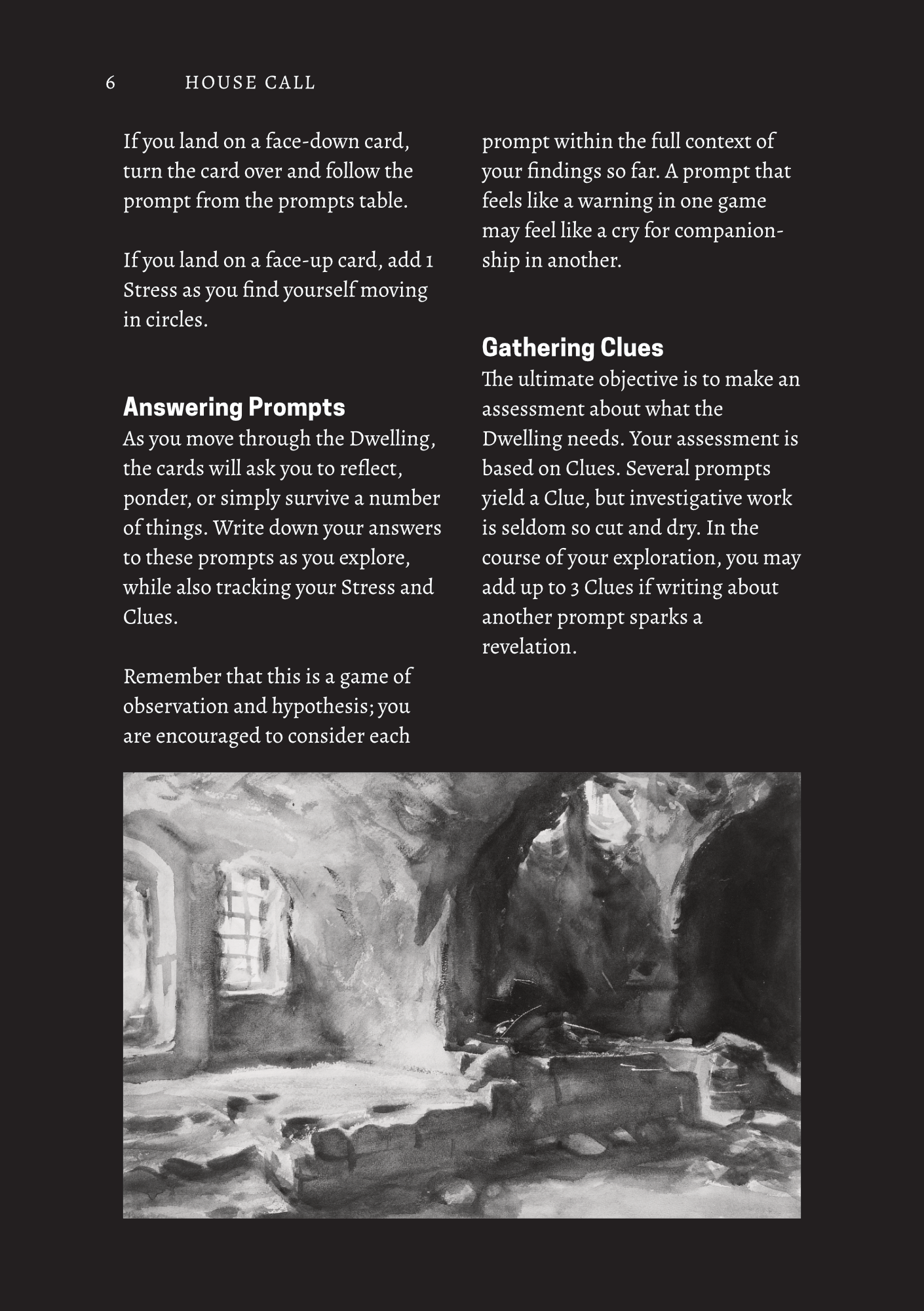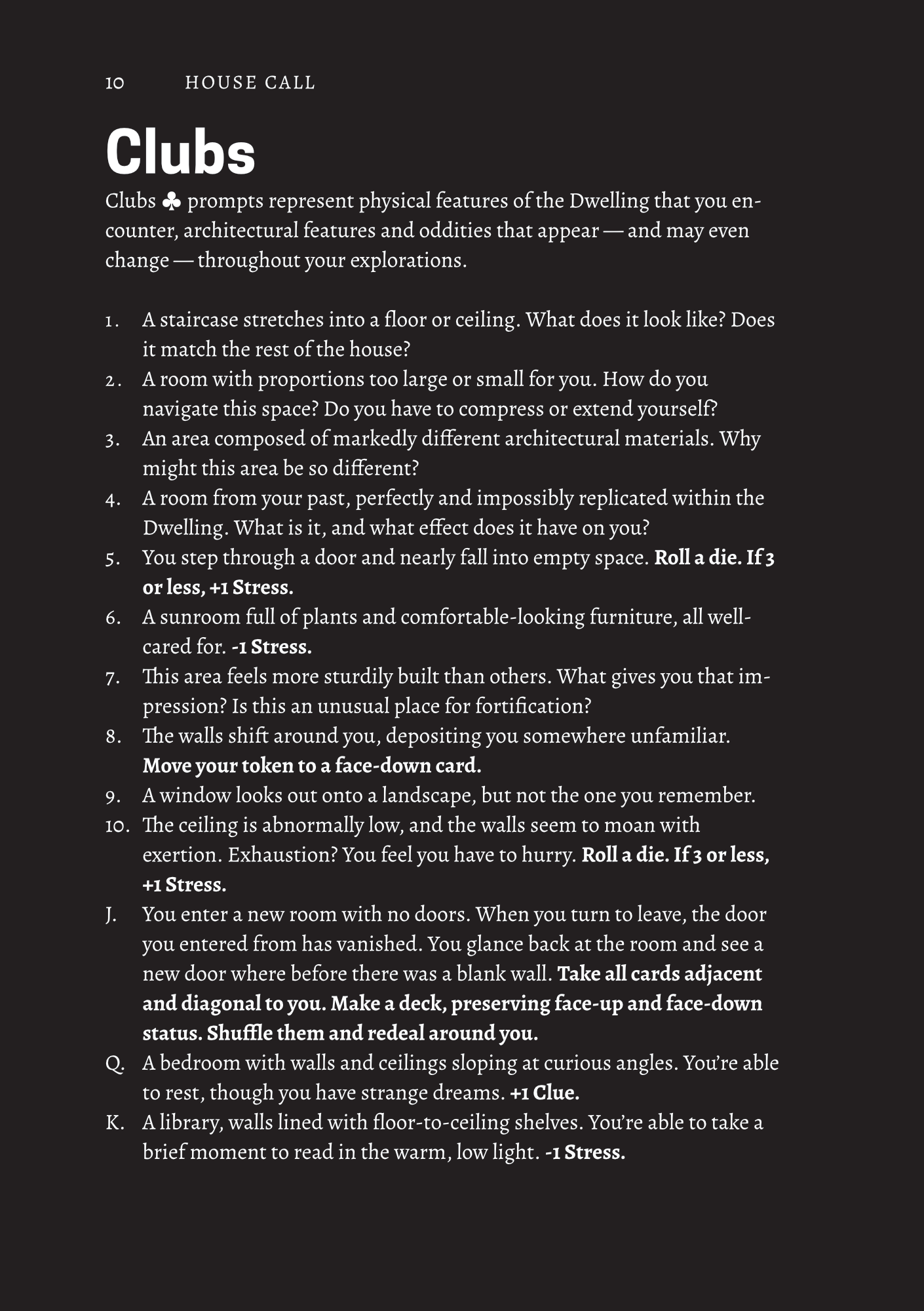 Some prompts involve claustrophobic and agoraphobic situations, as well as scenarios of confinement as the Dwelling shifts around you.